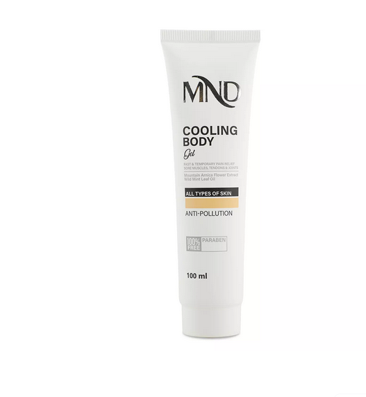 ژل خنککننده پوست MND حاوی منتول و روغن برگ نعناع وحشی است که با درگیرکردن گیرندههای حسی پوست باعث کاهش احساس درد در عضلات، مفاصل و ... میشود. همچنین از روغن پونه نیز در محصول استفاده شده است تا محصول بتواند بهتر التهاب و قرمزی پوست را کاهش داده و از خشک شدن پوست بعد از استفاده از ژل جلوگیری شود. با توجه به اینکه عصاره گل آرنیکا کوهی از عصارههای بسیار موثر در کاهش التهاب میباشد از این عصاره بسیار مفید نیز در محصول کمک گرفته شده است تا مکمل فعالیت خنککنندگی سایر اجزای فرمولاسیون مانند منتول باشد. با توجه به اینکه احتمال دارد پوست بعد از تجربه خنکی نسبت به عوامل پیرامونی حساس شده باشد از عصاره جوانه شاهی نیز در محصول استفاده شده است تا پوست در برابر عوامل پیرامونی محافظت شده و در برابر آنها مقاوم باشد.