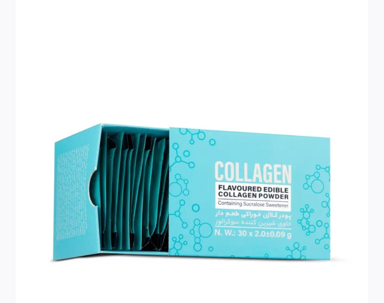 پودر کلاژن خوراکی طعم دار حاوی شیرین کننده سوکرالوز ۳۰ عددی