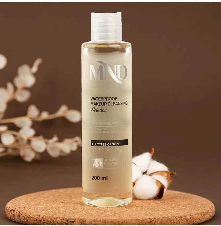 محلول پاک کننده آرایش ضدآب مناسب انواع پوست ام ان دی 200 میلیلیتر