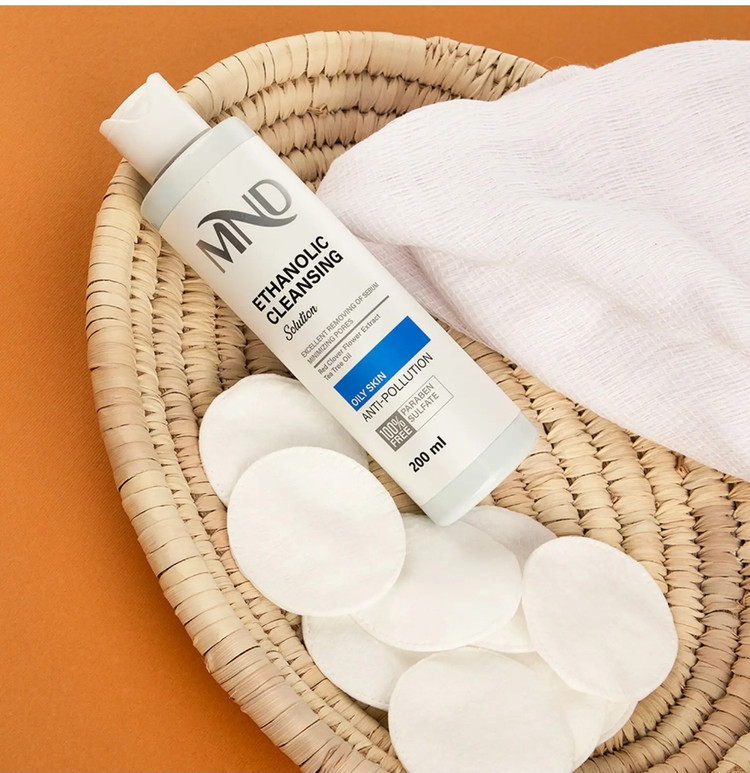 اتانول یکی از موثرترین حلکنندههای مواد روغندوست بوده و استفاده از این ماده در محلول پاککننده MND باعث شده که سبوم پوست در این حلال حل شده و براقیت و چرببودن پوست کاهش یابد. این محصول عصاره گل شبدر قرمز را در خود دارد که به همراه عصاره انار موجب کاهش ترشح سبوم شده و منافذ باز پوست را کوچک میکنند تا زیبایی چهره حفظ شود. ناگفته نماند که محلول پاککننده اتانولی MND از سایر ترکیبات محدودکننده تولید سبوم و کاهشدهنده منافذ باز پوست مثل زینک پیسیای، پیریدوکسین فسفات حلقوی و اسید سالیسیلیک و ترکیبات کاهش دهنده فعالیت باکتریهای مضر در سطح پوست مثل روغن برگ درخت چای هم بهره میبرد که نقش مکمل برای ترکیبات فوقالذکر ایفا کرده و از وخیم شدن وضعیت پوست و ایجاد جوش و آکنه در سطح پوست جلوگیری میکنند. باتوجه به اینکه حذف زیاد سبوم از پوست و یا لایهبرداری خفیف اسید سالیسیلیک میتواند باعث ایجاد التهاب شوند، از بیزابولول نیز در محصول استفاده شده تا جلوی بروز این عارضه هم گرفته شود. باتوجه به اینکه پوستی که سبوم روی خود را از دست داده، مستعد تحریک شدن توسط آلودگی محیطی و ذرات گردوغبار است، باید محافظت از پوست دربرابر این عوامل پیرامونی هم درنظر گرفته میشد و به همین منظور از عصاره گل کاملیا ژاپنی کمک گرفته شده که تاثیرگذاری عوامل پیرامونی در پوست را کم میکند.