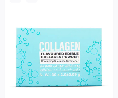 پودر کلاژن خوراکی طعم دار حاوی شیرین کننده سوکرالوز ۳۰ عددی